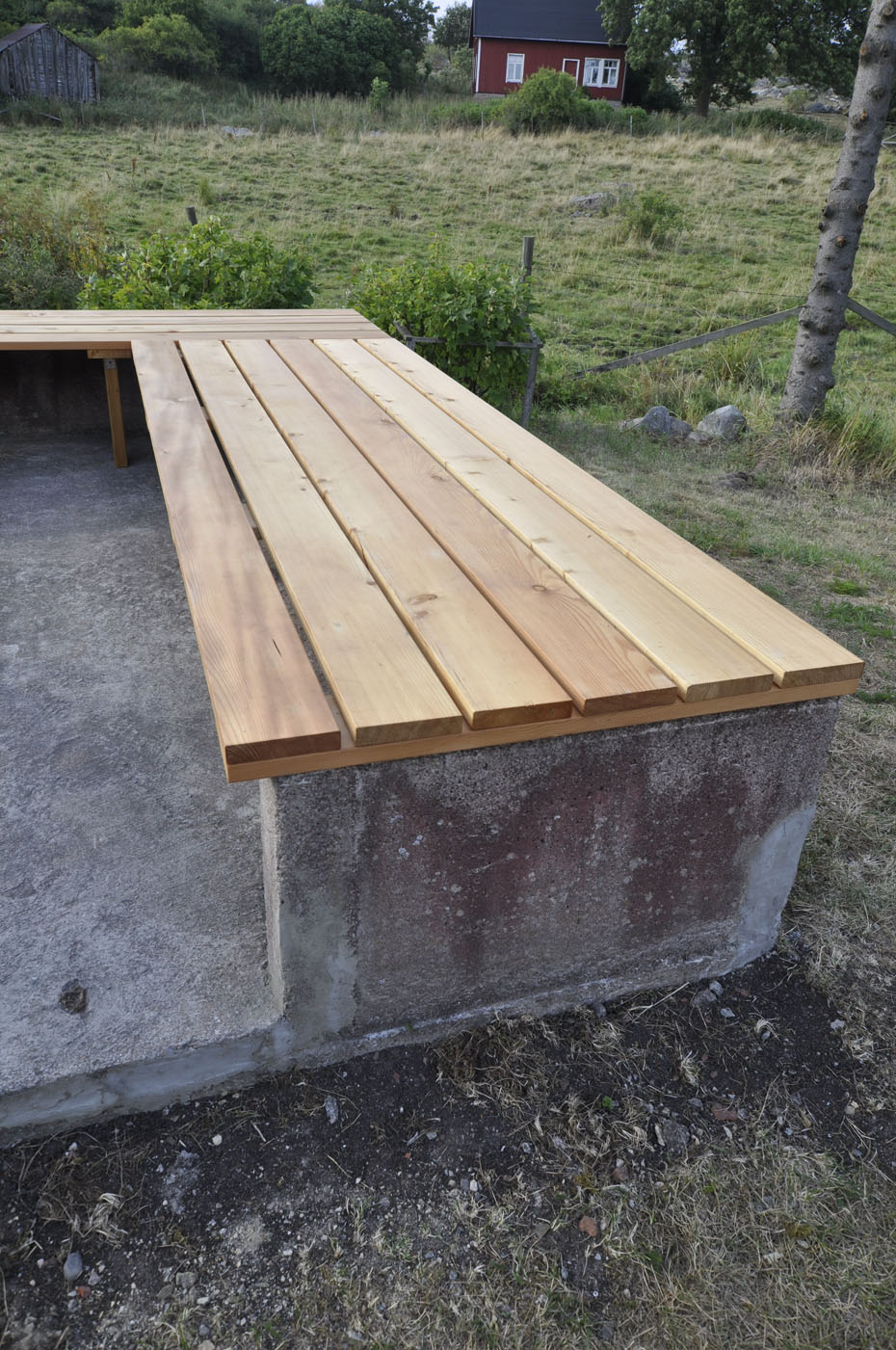 Das Sibirische Lärchenholz, welches für die Sitzbänke verwendet wurde, sieht nicht nur schön aus, sondern ist auch von Natur aus sehr widerstandsfähig. Es kann auch ohne Druckimprägnierung oder Schutzlasur im Aussenbereich eingesetzt werden. Imma behandelt es aber doch noch mit einem Terrassenöl, dadurch dringen Schmutz und Wasser nicht so schnell ins Holz ein und es wird noch etwas robuster. Trotz Ölbehandlung wird das Holz mit der Zeit seine rötliche Färbung verlieren und vergrauen.