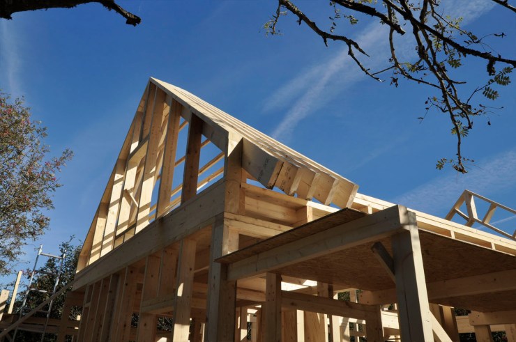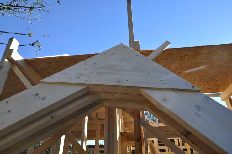 Nach den Giebelfeldern ist der Dachstuhl an der Reihe.