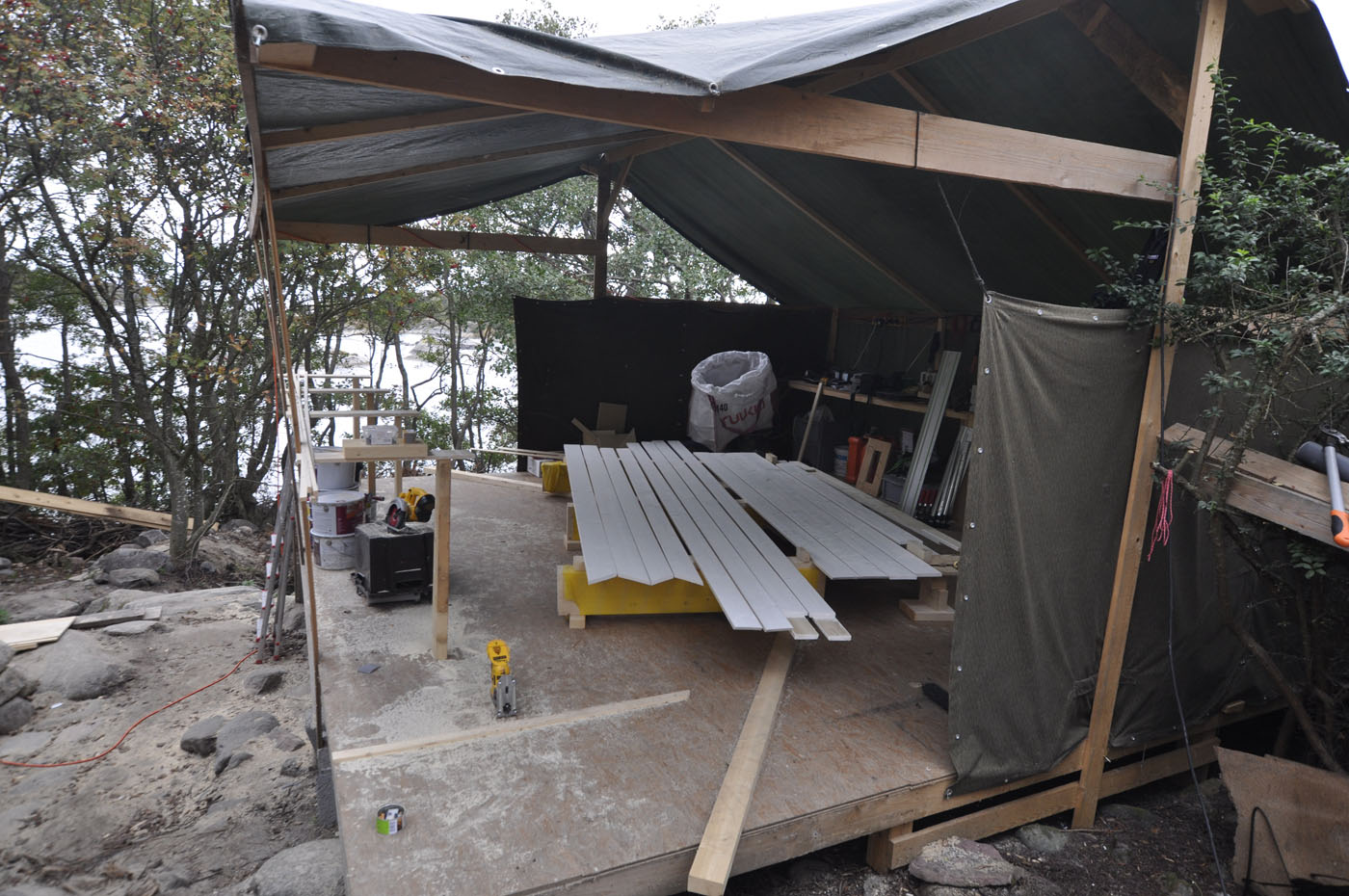 dachrandbretter-gestrichenBei Lintukoto, dem kleinen Haus am Meer, wird der Dachrand mit weiss lackierten Brettern eingefasst. Die Bretter werden vor dem Einbau zugeschnitten und mit Holzschutzgrundierung und weisser Ölfarbe fertig beschichtet.