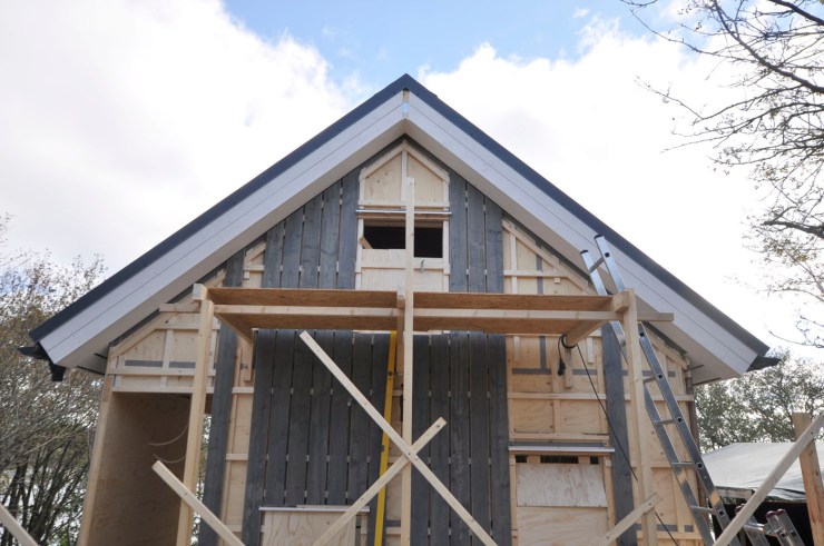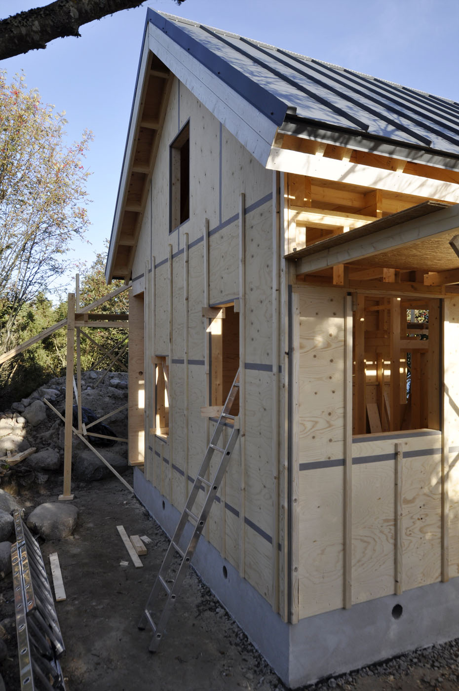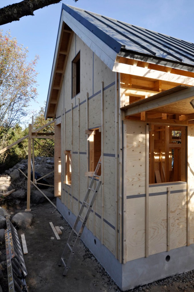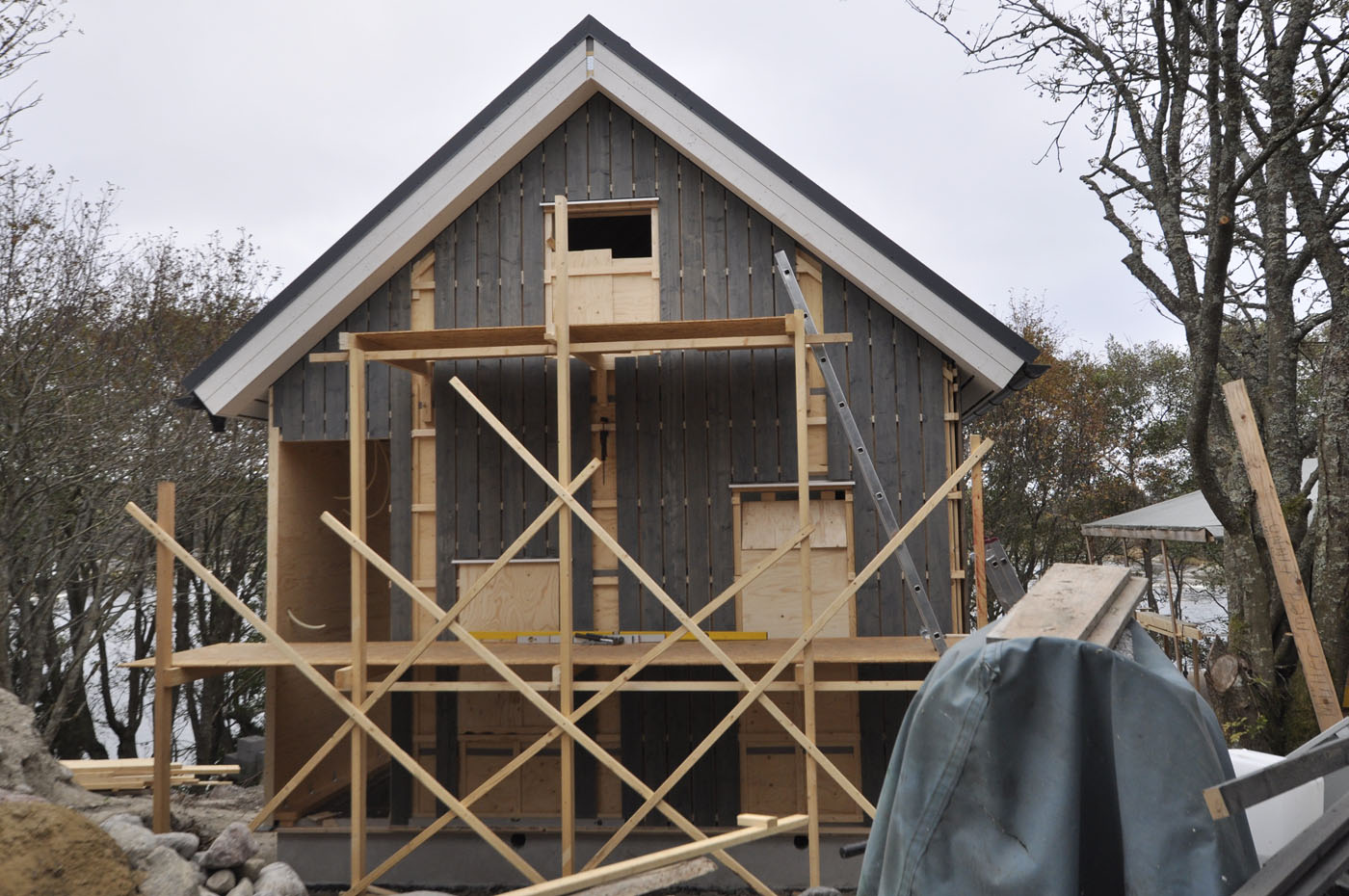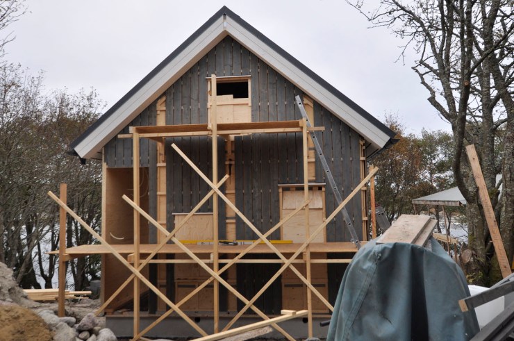 Teuvo und Mika montieren die Westfassade noch fertig, dann verabschieden sie sich für dieses Jahr.