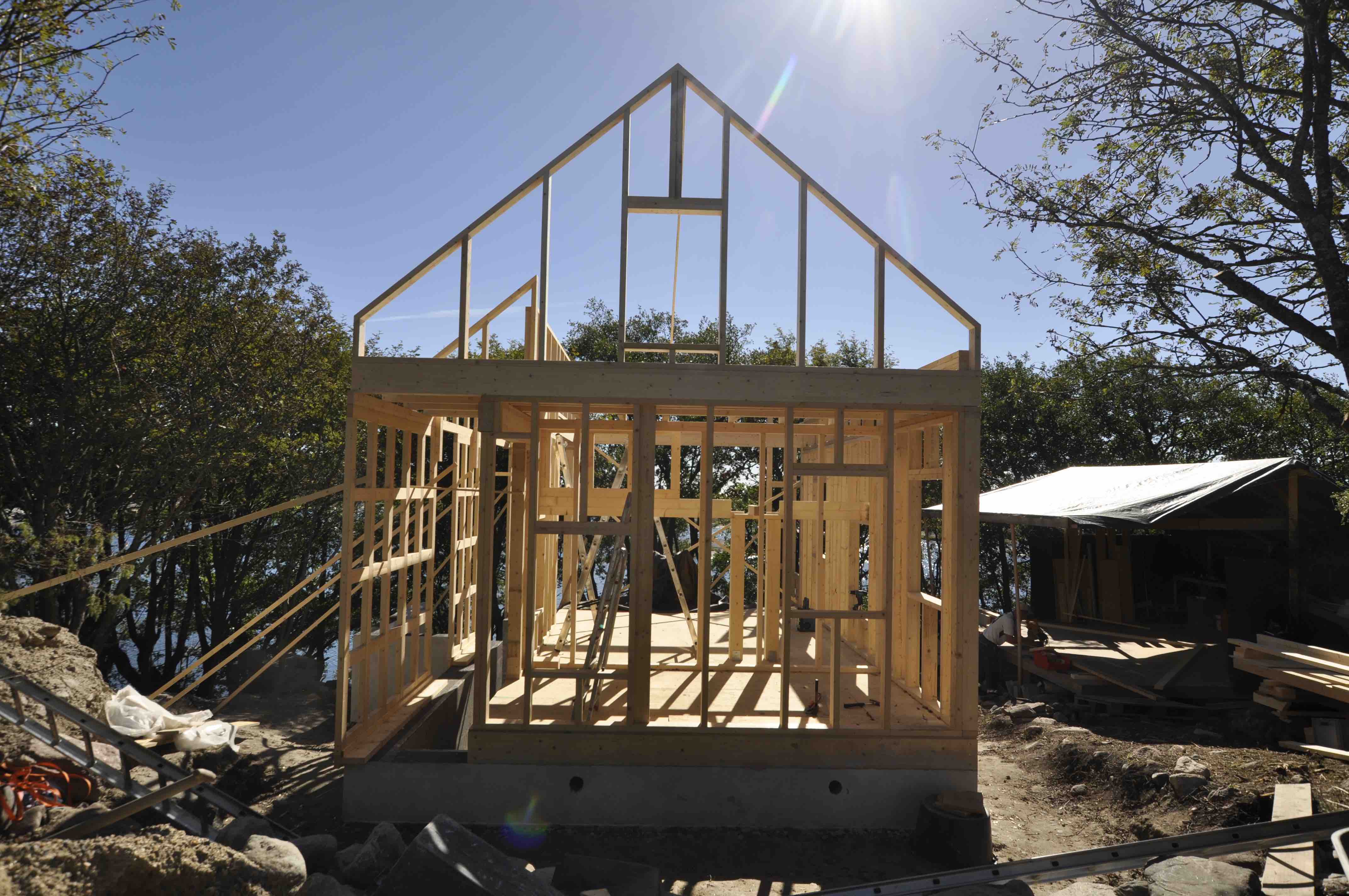 Um die richtige Stelle für Lintukoto zu finden, den geheimen Ort zwischen den Baumwipfeln, mit Blick aufs Meer, kämpften sich Imma und Hans-Ruedi im Sommer 2015 stundenlang durch Dickicht und Dornengestrüpp. Nach einem langen Planungswinter begann dann der Neubau mit Rodungsarbeiten im April 2016. Das Haus wird in drei Bauetappen – je während der Sommermonate – von 2016-2018 erstellt.